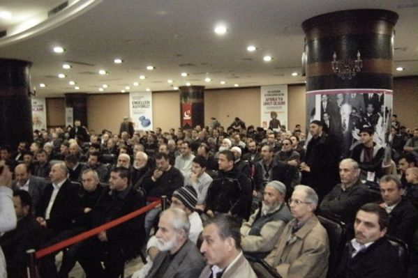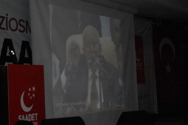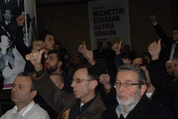Erbakan'ın sözlerinden oluşan sinevizyon gösterisi salonda alkışlandı. Salondakiler zaman zaman Müceahit Erbakan sloganları attı.