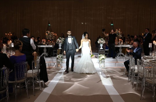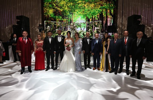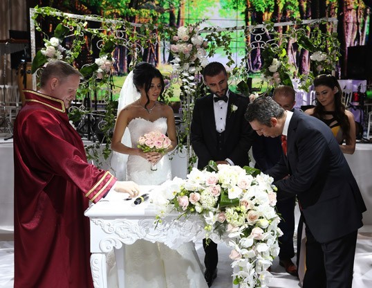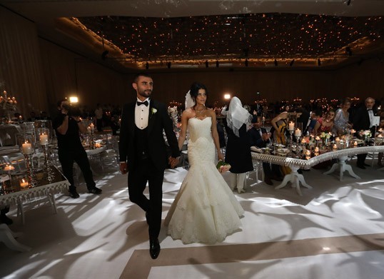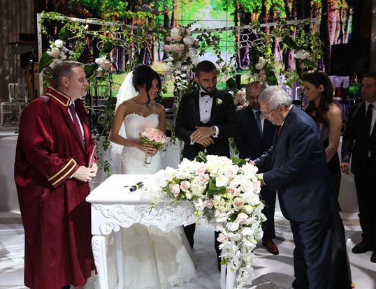 Raffles İstanbul Otel'de gerçekleşen düğün töreninde çiftin nikahını İstanbul Büyükşehir Belediye Meclisi 2. Başkan Vekili Göksel Gümüşdağ kıyarken, şahitliklerini ise Fenerbahçe Yüksek Divan Kurulu Başkanı Vefa Küçük, Kulüp Başkanı Aziz Yıldırım, Eski Asbaşkanlardan Ali Koç, Burcu ve Mustafa Balcı çifti yaptı.