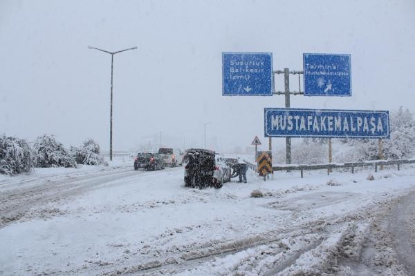 Marmara Bölgesi’ni etkisi altına alan kar yağışı karayolu ulaşımını olumsuz yönde etkilemeye devam ediyor. Bursa- İzmir karayolunun Mustafakemalpaşa İlçesi yakınlarında kapanmasının ardından Bursa- Ankara karayolu da Ümitalan rampasında iki TIR’ın kayması sonucu ulaşıma kapandı. Yolun kapanması nedeniyle İnegöl’den Bursa yönüne araç geçişine izin verilmiyor.