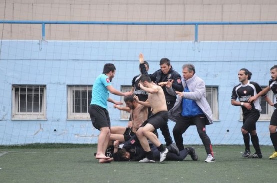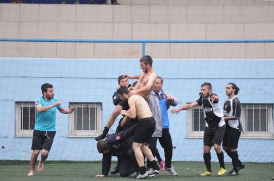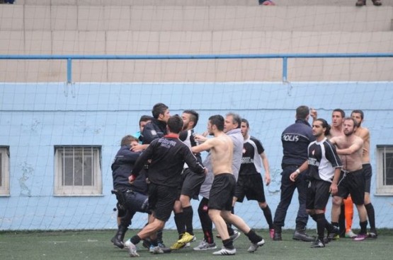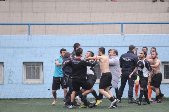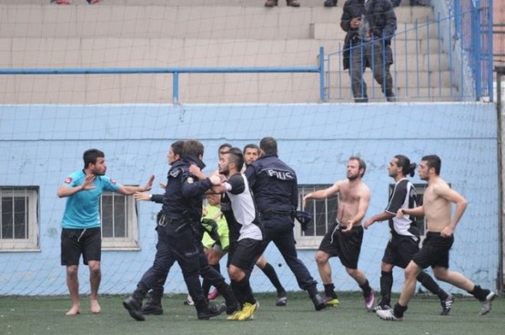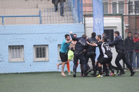 Trabzon Amatör Küme futbol karşılaşmasında çıkan olaylarda futbolcularla polisler birbirine girdi.