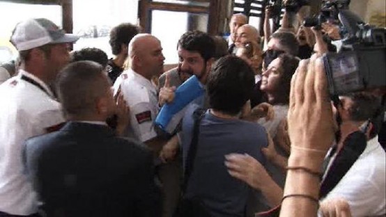 Çevre Şehircilik İl Müdürlüğü ÇED Şube Müdür Vekili Mehmet İleri'nin 'toplantı sona ermiştir" demesi üzerine, protestocular toplantının yapılmadığına ilişkin tutanak tutulmasını istedi. Tutanak düzenlemeden salondan ayrılmak isteyen yetkililer, ısrar üzerine 'toplantının gerçekleştirilmediğine' dair tutanak tuttu. Protestocular ise tutanağın, 'toplantının açılmadığı' şeklinde düzenlenmesi gerektiğini savundu. Tutanağı düzenledikten sonra salonu terk etmek isteyen yetkililerle tutanağın bir nüshasını isteyen eylemciler arasında arbede çıktı. Tutanağın nüshasını alamayan eylemciler, toplantının açılmadığına ilişkin kendileri yeni bir tutanak düzenledi. Grup daha sonra salondan ayrıldı.