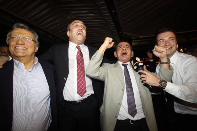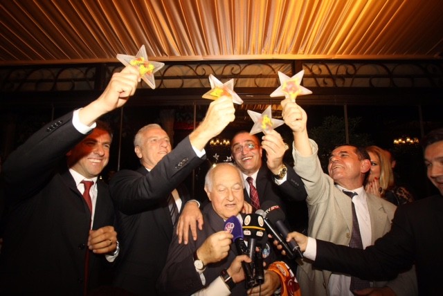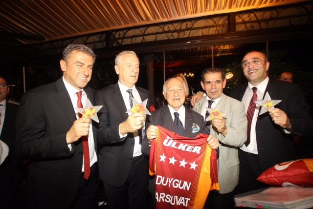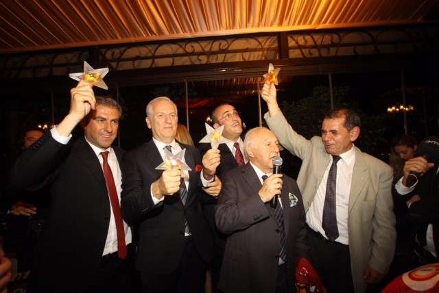 Sarı-kırmızılı takımın yeni başkanı Dursun Özbek, eski başkan Duygun Yarsuvat, teknik direktörü Hamza Hamzaoğlu, Abdurrahim Albayrak, Ali Dürüst ve beraberindekiler şampiyonluğu Suada'da coşku içinde kutladı.