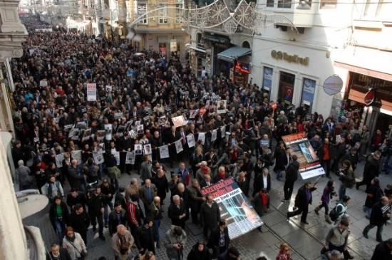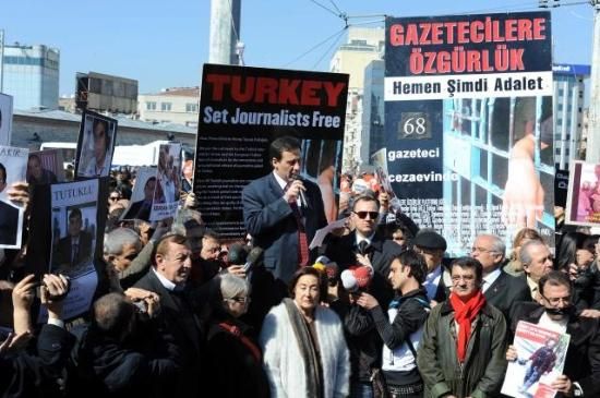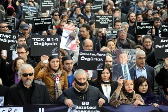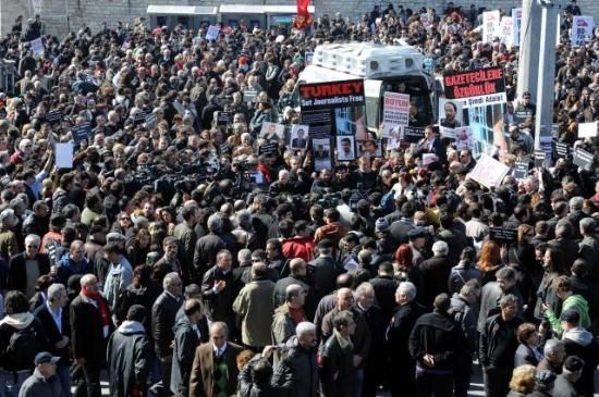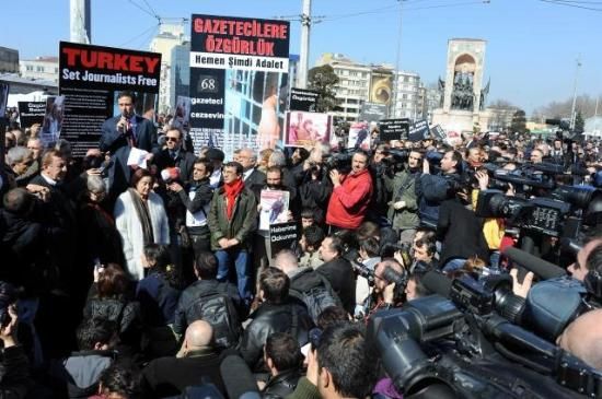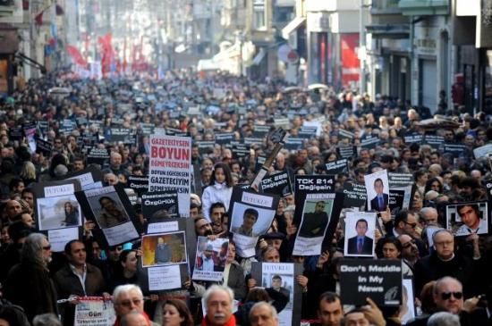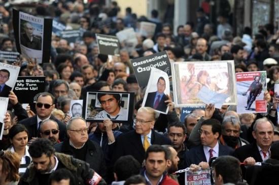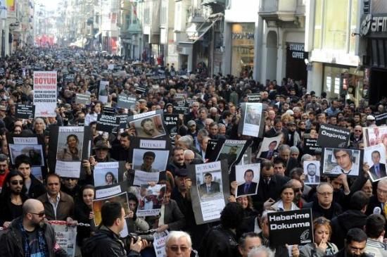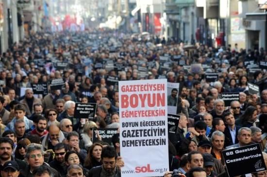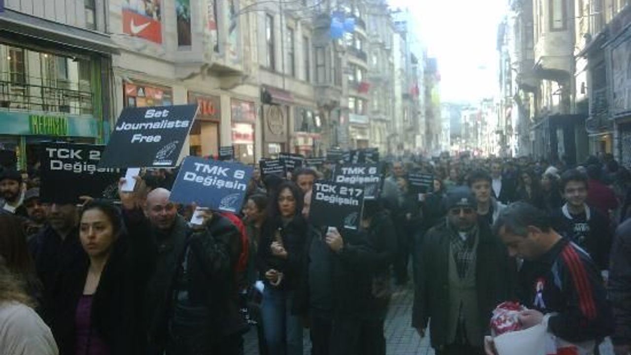Gazeteciler, tutuklu gazeteciler için yürüdü
