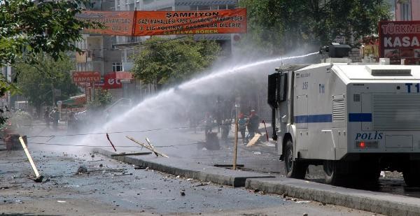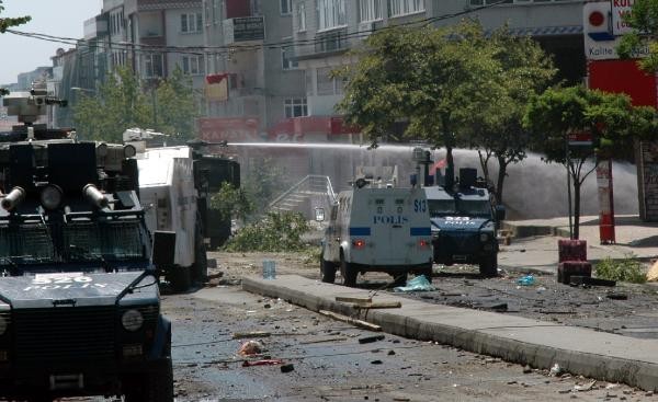 SULTANGAZİ Gazi Mahallesi'nde polis toplanıp yola barikat kurmaya çalışan bir gruba müdahale etti. Gruptaki kişiler polise taş attı. Polis barikat çervesindekileri tazyikli su ve gaz kullanarak dağıtmaya çalıştı.