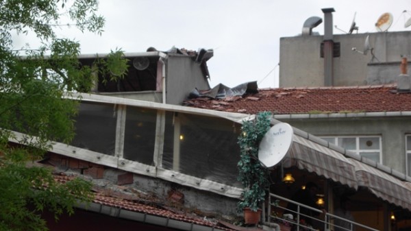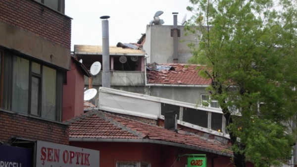 Gaziosmanpaşa'da bir binanın çatısı fırtınanın şiddetine dayanamadı.