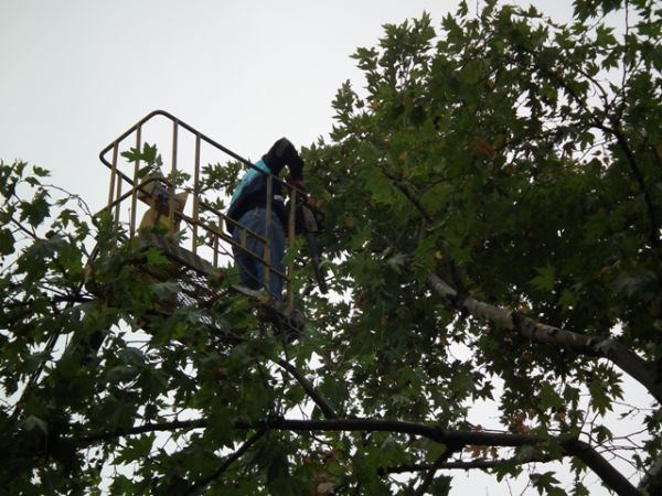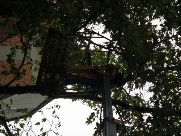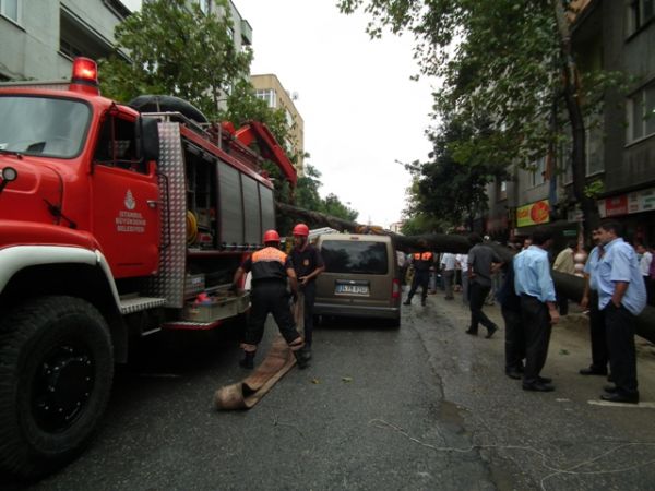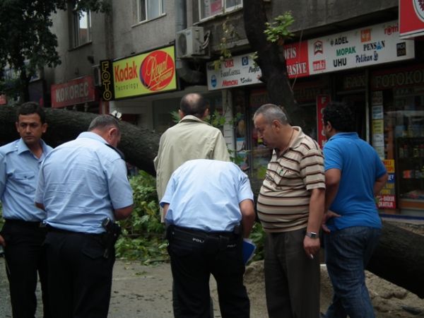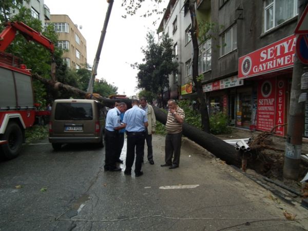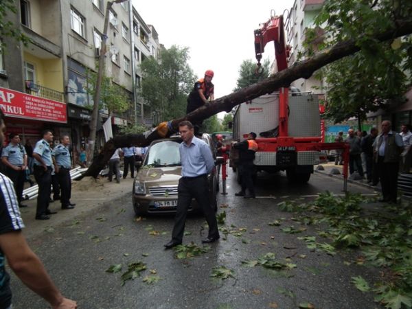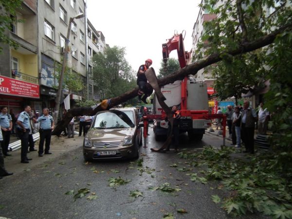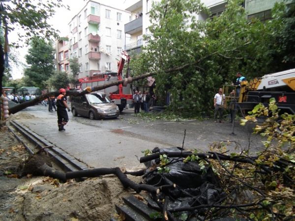 Devrilen ağaç olay yerine gelen itfaiye ve belediye ekipleri tarafından kesilerek yoldan kaldırıldı. Devrilme tehlikesi bulunan diğer ağaçlarda budanarak hafifletildi.