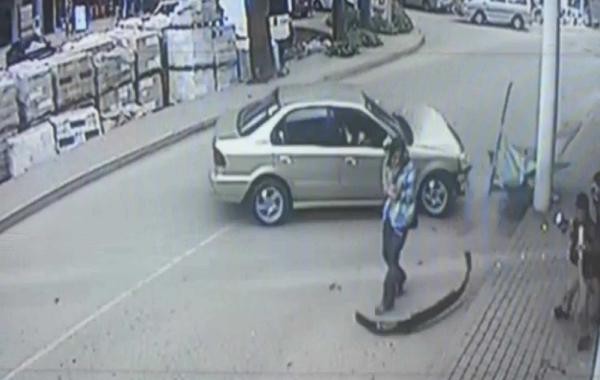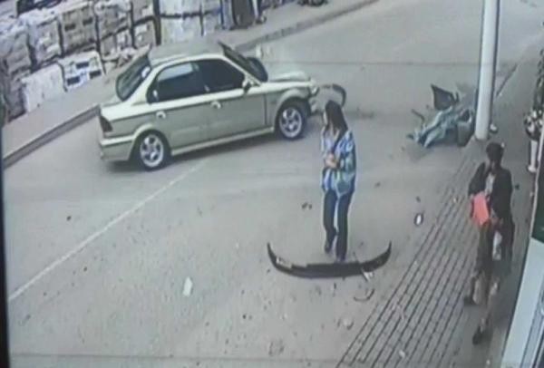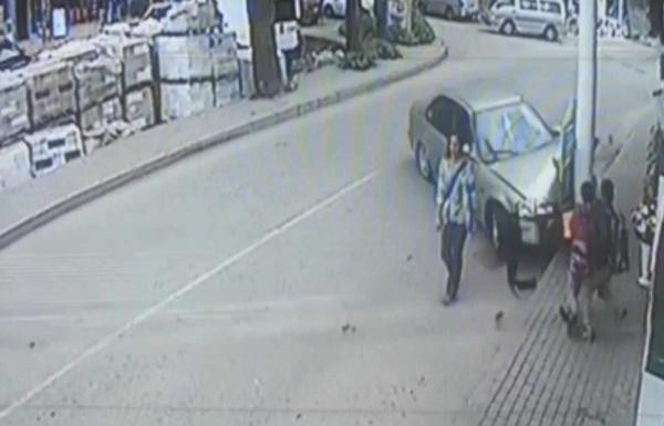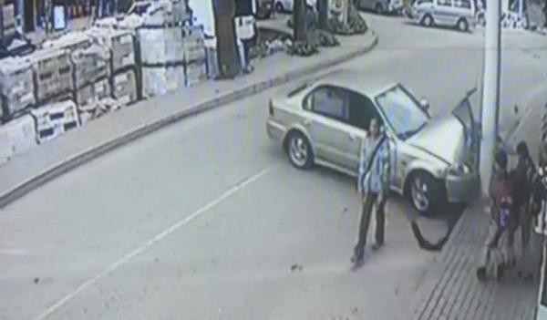 Ön bölümü parçalanan otomobilden inen sürücü otomobili tekmelerken, genç kız ve çocuklar vatandaşlar tarafından sakinleştirildi. Güvenlik kamerasını izleyen işyeri sahibi ise şaşkınlığını gizleyemeyerek, "genç kızı ve çocukları melekler korudu" dedi.