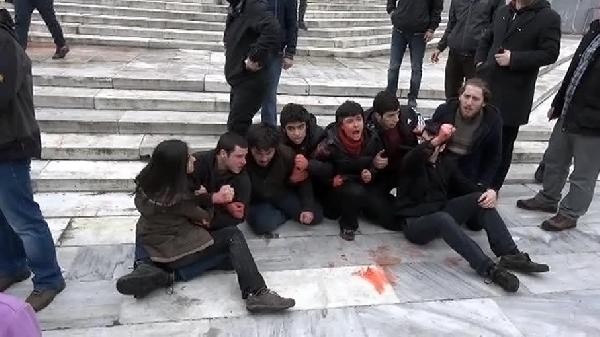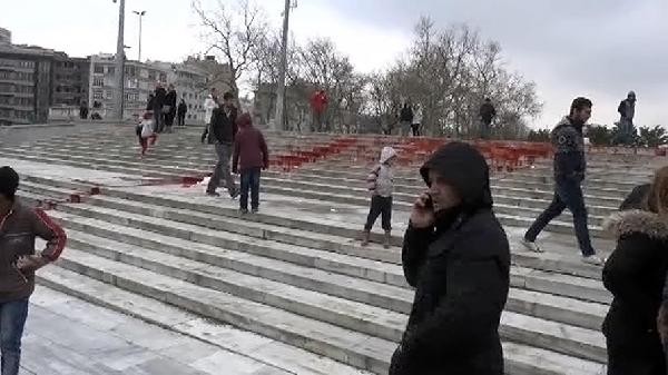 Gezi Parkı merdivenlerine kırmızı boya dökerek eylem yapan gruba polis müdahale etti.