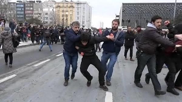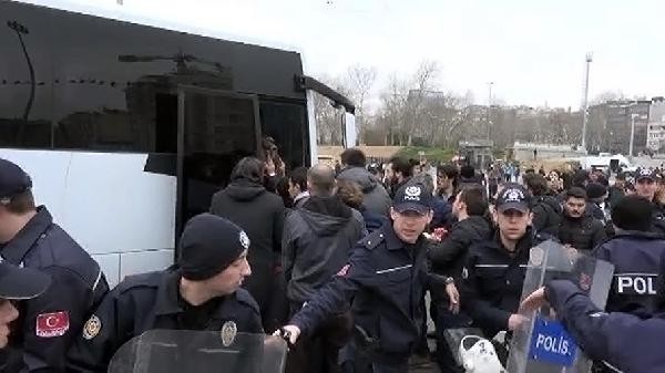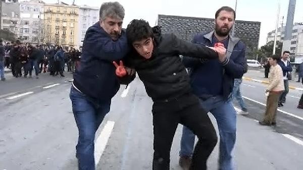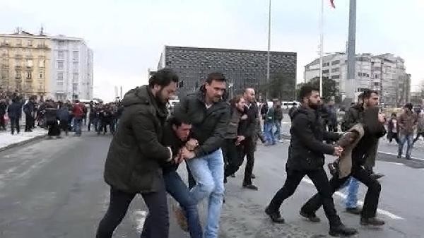 Gezi olaylarında hayatını kaybeden Berkin Elvan'ın ölüm yıldönümü nedeniyle yaklaşık 10 kişilik grup, Gezi Parkı merdivenlerinde eylem yapmak istedi. Pankart açan grup, merdivenlere de kırmızı boya döktü. Polis, gruba müdahale etti. Grup üyeleri yaka paça gözaltına alındı.