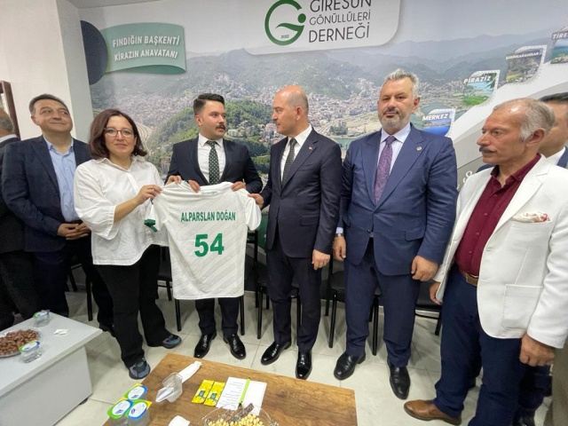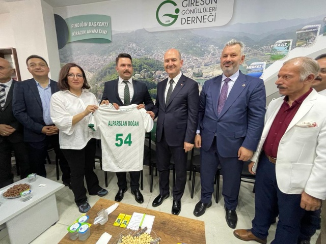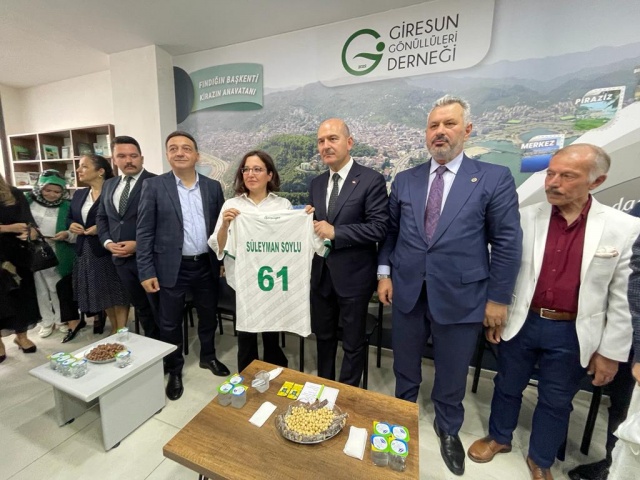 Tülay Tahmuz İçişleri Bakanı Soylu'ya Trabzon PLakası yazılı Giresun Gorması hediye etti.