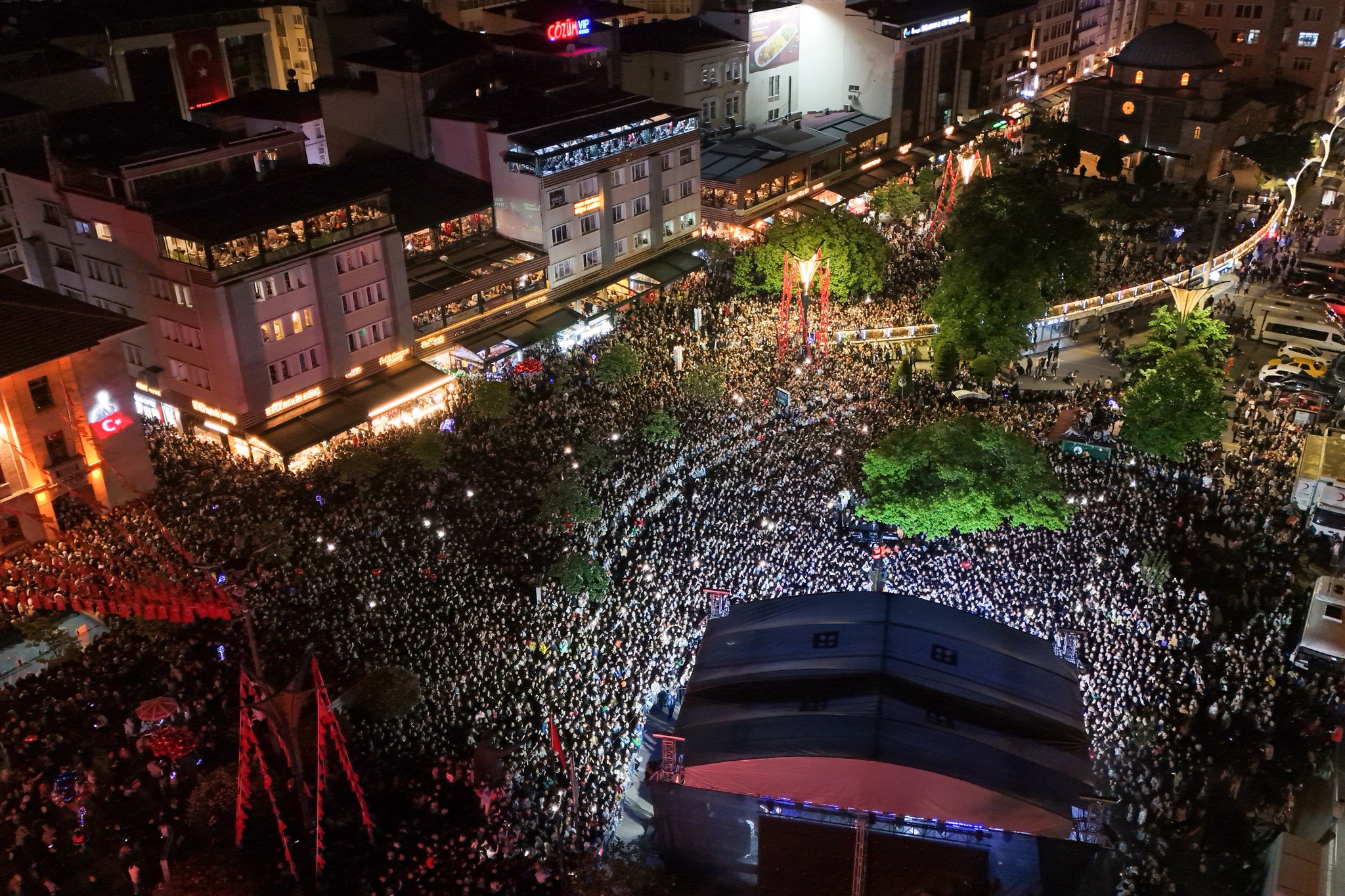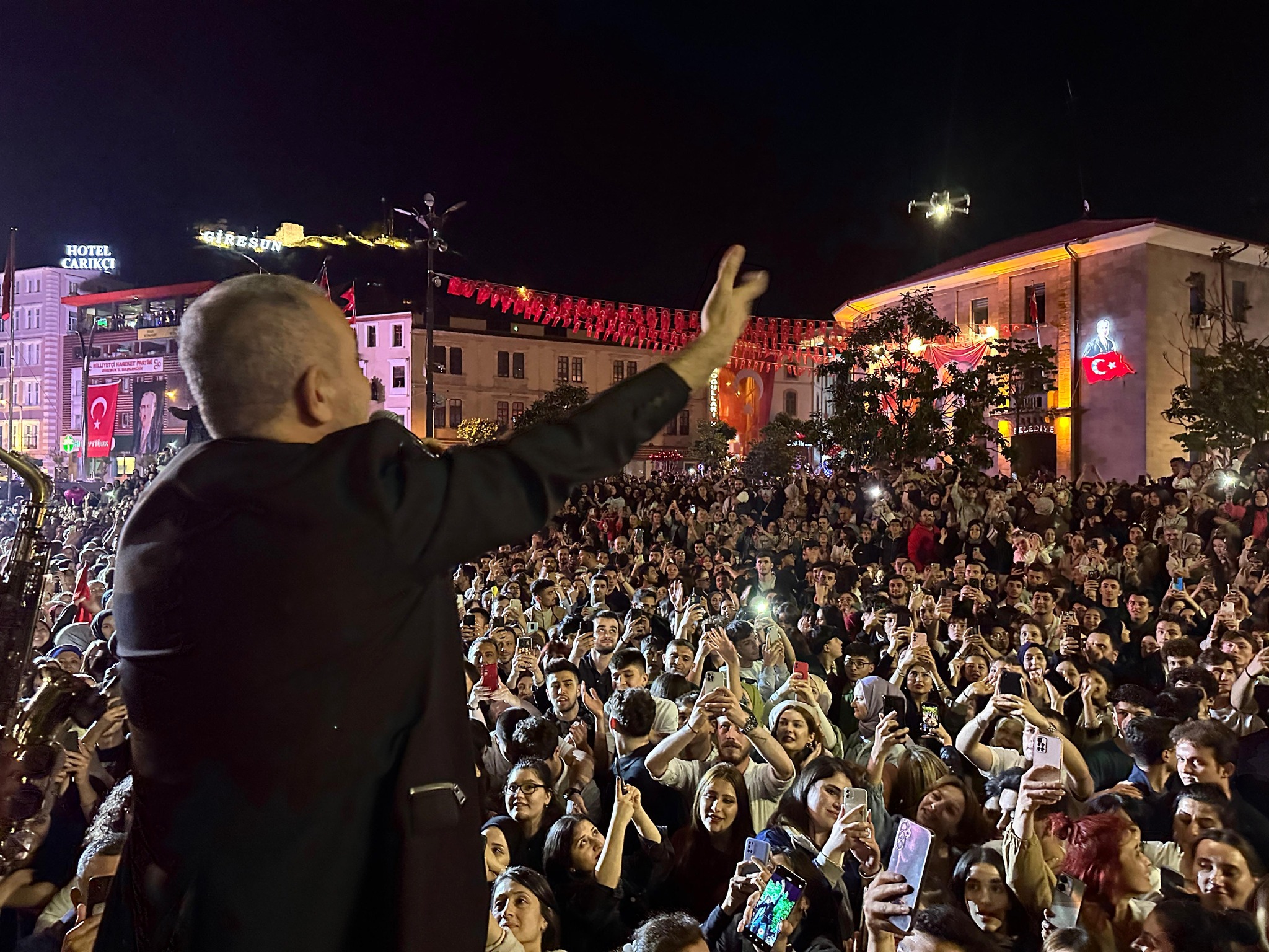 Atatürk Meydanı’nda düzenlenen konserde Atatürk Meydanı ve ara sokaklar izleyicilere yetmedi.