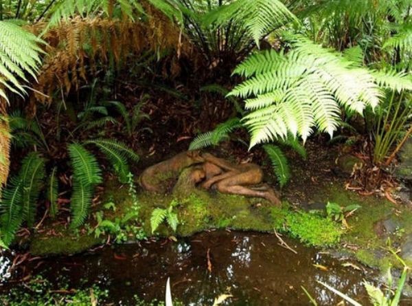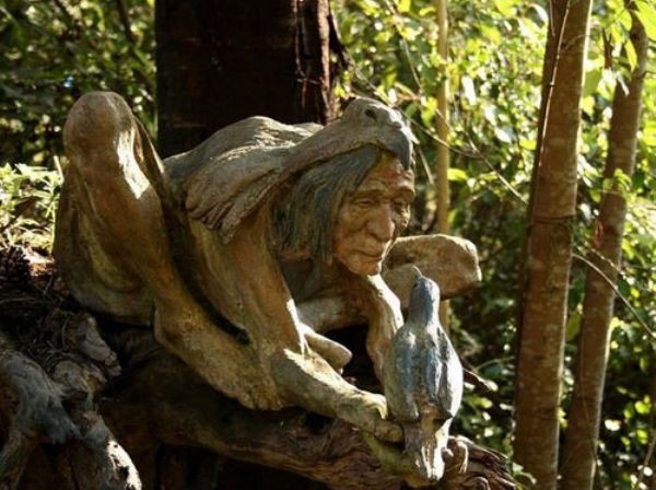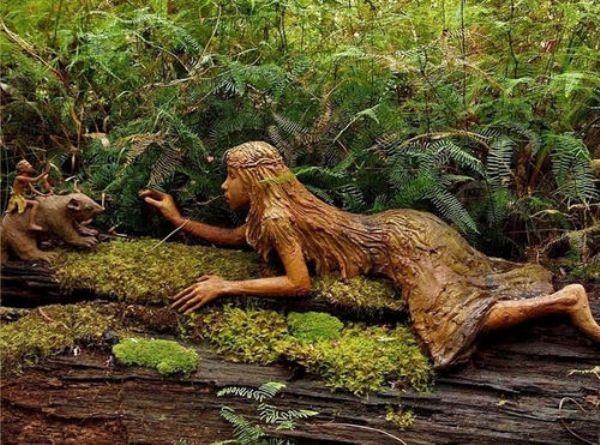 Avustralyalı bir sanatçının bir ormanda ağaçtan heykeller görenleri hayrete düşürüyor.