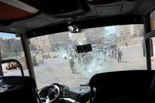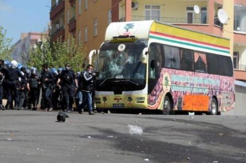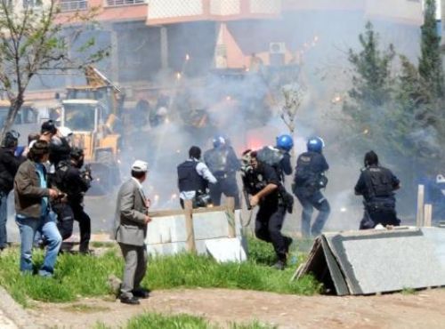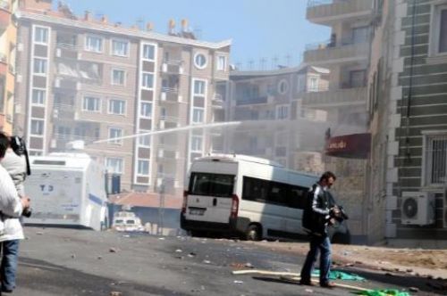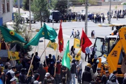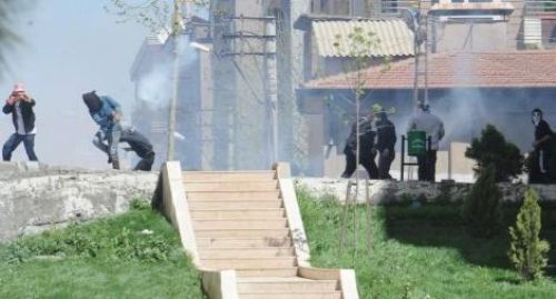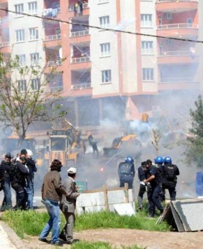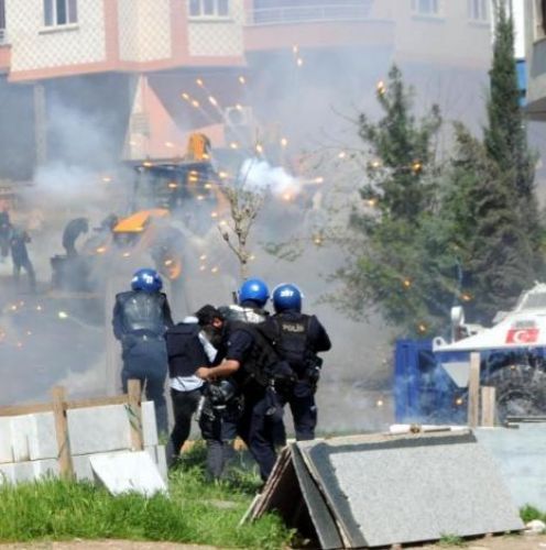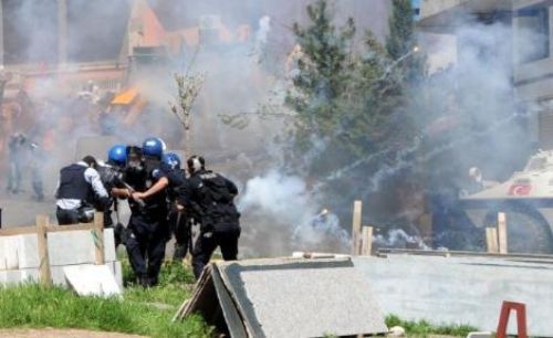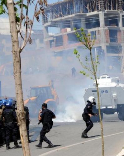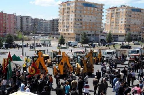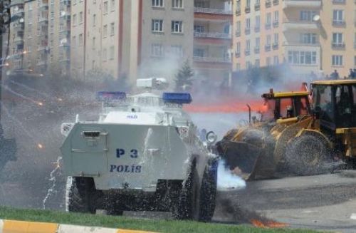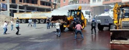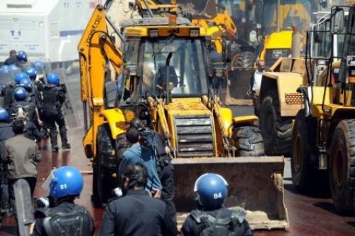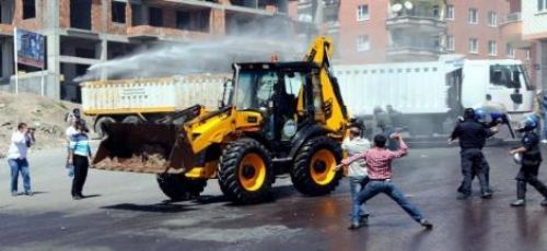 Göstericiler iş makinelerini polisin üzerine sürdü