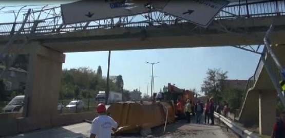 Hafriyat kamyonu ise kontrolden çıkıp yol kenarındaki bir gecekondunun duvarına çarparak durabildi. Kaza sırasında üst geçitten geçen kimsenin olmaması olası bir facianın önüne geçerken, akıllara Avcılar'daki üst geçit kazası geldi. Üst geçitteki beton parçaları yola dökülürken, yön levhalarıda paramparça oldu.