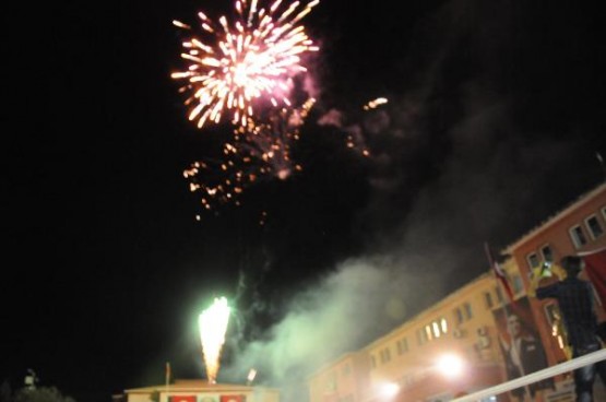 Bu duygu ve düşencelerle herkesin Cumhuriyetine sahip çıkması, kardeşlik duygusu, birlik beraberlik ruhu içerisinde cumhuriyetimizi muassır medeniyetler seviyesine taşımak bizim temel görevimizdir" dedi. Konuşmaların ardından polisler tarafından havai fişekler patlatıldı. 5 dakika boyunca atılan havai fişekler büyük bir ilgiyle izlendi.