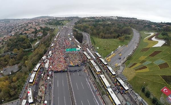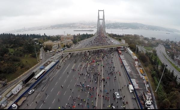 Onbinlerce kişinin katıldıgı maraton ve halk koşusu, Altunizade'den başladı ve katılımcıların Boğaziçi Köprüsü'nden geçişi yaklaşık 3 saat sürdü. Yoğun güvenlik önlemlerinin alındığı 36. Vodafone İstanbul Maratonu nedeniyle köprünün her iki taraında da güvenlik önlemleri alındı, köprünün deniz tarafındaki şeritleri bariyerlerle kapatıldı, katılımcılar ortada kalan 4 şeride yönlendirildi. Köprü korkuluklarının kenarına giderek fotoğraf çektirmek isteyenlere izin verilmedi.
