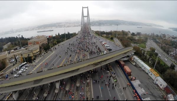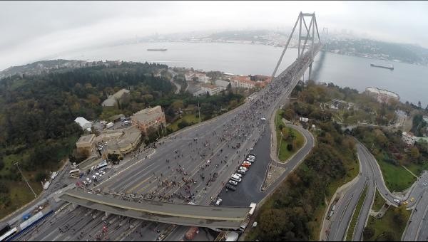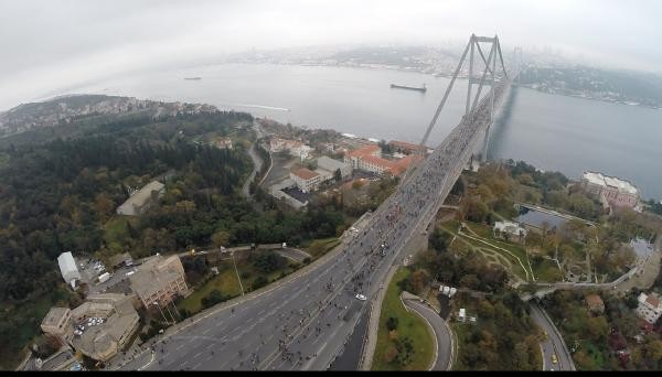 36. Vodafone İstanbul Maratonu ve halk koşusu İstanbul'da yapıldı. Maratonun Boğaziçi Köprüsü geçişi DHA Gökyüzü Kamerasıyla görüntülendi.