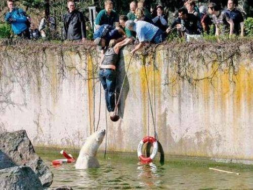 Almanya'nın Berlin kentindeki hayvanat bahçesinde boz ayıların fotoğrafını çekerken suya düşen kadın güçlükle kurtarıldı.