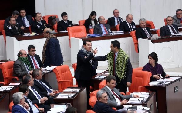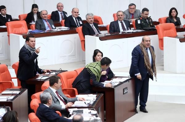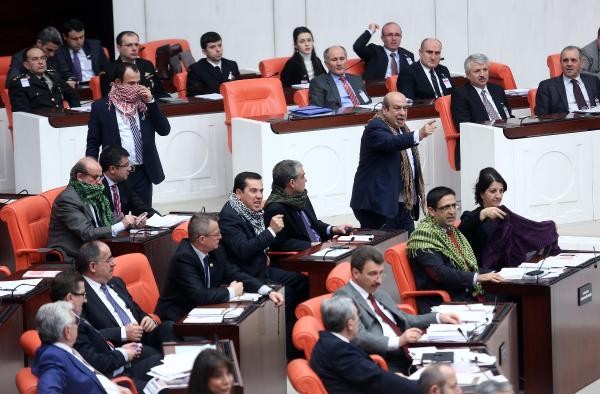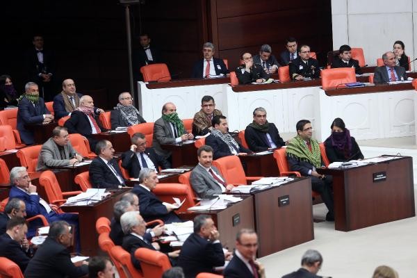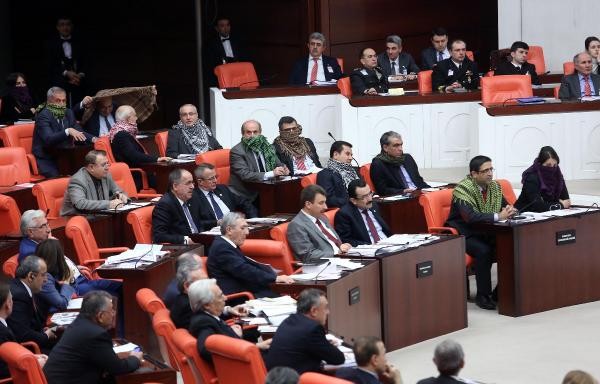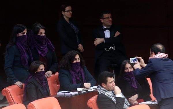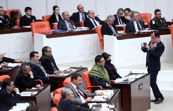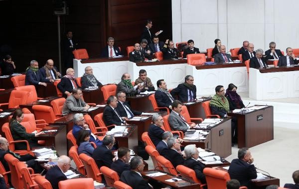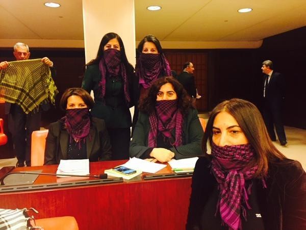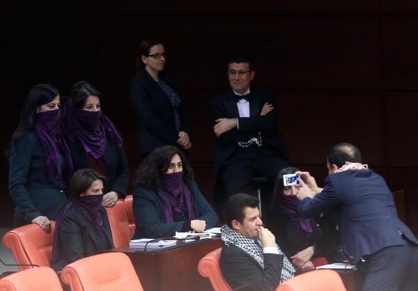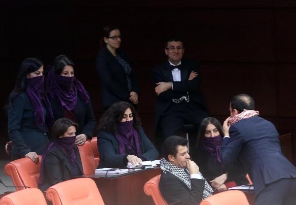 TBMM Genel Kurulu'nda, kamuoyunda 'İç Güvenlik Paketi' olarak bilinen tasarının görüşmeleri sırasında HDP'li milletvekilleri poşu takarak, tasarıyı protesto etti.