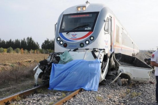 Mersin'in Tarsus İlçesi'nde yolcu treninin hemzemin geçitte kamyonete çarpması sonucu meydana gelen kazada 2 kişi öldü. Kazanın, bozuk bariyerin kapatılmaması sonucu meydana geldiği ileri sürüldü.