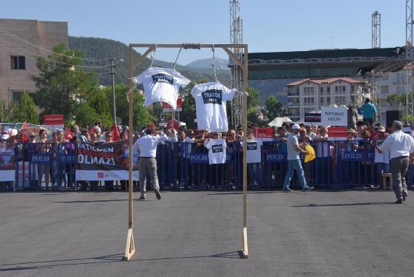 Sanık askerlerden Astsubay Gökhan Güçlü'nün dün, üzerinde kahraman anlamına gelen 'hero', altında da İngilizce Kahramanlar ölümsüzdür' yazılı tişörtle duruşmaya gelmesi vatandaşlar tarafından bugün protesto edildi. Protestocu grup, sanıkların geçirildiği alana İngilizce hain anlamındaki 'Traitor' yazılı tişörtleri temsili dar ağacına astı.