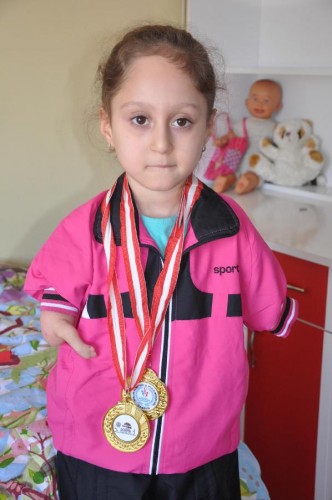 SAMSUN’da doğuştan kolları olmayan 7 yaşındaki Nisanur Çalık, yüzme sporuna başlayarak hayata tutundu. Küçük kızın en büyük hayali iyi bir yüzücü olup yarışmalarda madalyalar kazanmak.