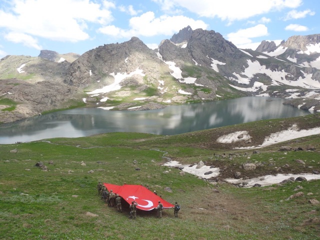 İkiyaka Dağları'nı teröristlerden temizleyen Mehmetçik dev Türk Bayrağı açtı