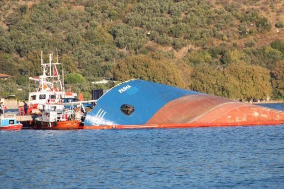 BALIKESİR'in Marmara İlçesi açıklarında geçen yıl yük kayması sonucu yan yatıp batma tehlikesi geçiren ve daha sonra çekildiği Erdek İlçesi'ne bağlı Narlı İskelesi'nde batan 'Pasha' isimli gemi 1 yıldan bu yana çıkartılmayı bekliyor. Narlı'daki balıkçılar,