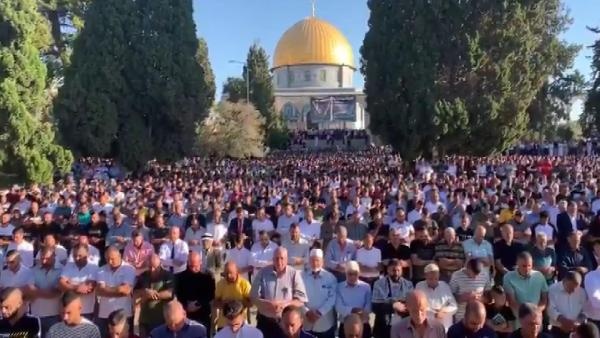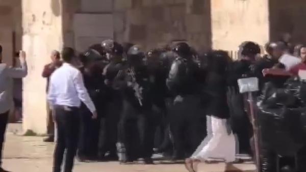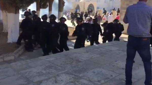 Mescid-i Aksa'da kılınan bayram namazı sonrası, Yahudi yerleşimcilerin Mescid-i Aksa'ya baskınlarını engellemek isteyen Filistinlilere, İsrail polisi sert müdahalede bulundu.