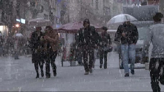 BEYOĞLU'nda saatler tam öğle vaktini 12:30'u gösterdiğinde hava aniden karardı. Akşam üzeri karanlığırı andıran hava birkaç dakika sonra patladı. Gök gürültüsüyle birlikte şiddetli dolu yağmaya başladı.