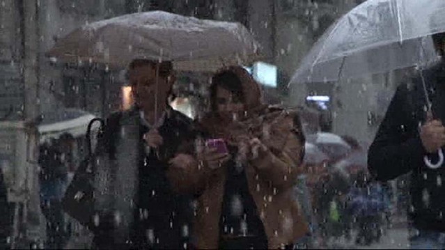 Araçların üzeri beyaza büründü. Bir süre sonra da İstiklal Caddesi'nin zemini tamamen beyaz oldu. Kar yağışına andıran sıklıkta yağan dolu, kışı aratmayan görüntüler ortaya çıkardı. Dolunun bir süre sonra erimesiyle zemin suyla kaplandı. Bazı vatandaşlar da cep telefonlarını çıkarıp bu özel anı görüntüledi.