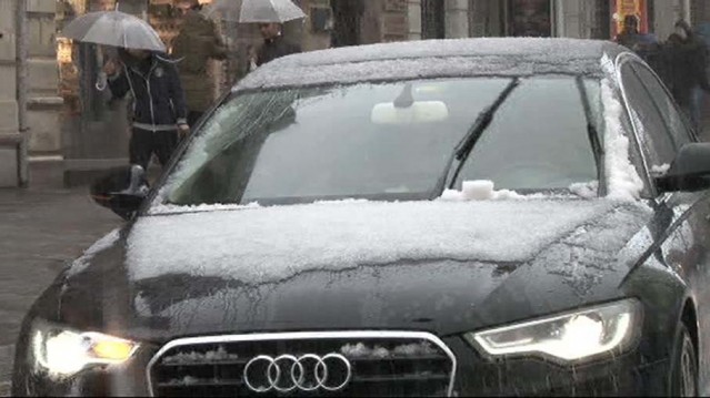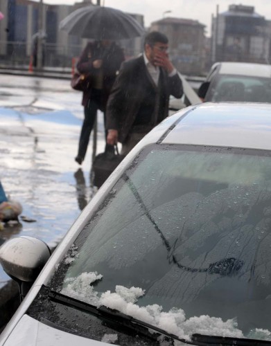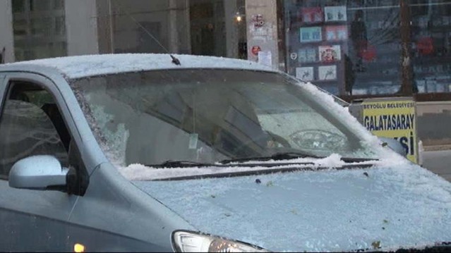 Şişli'de de kısa süreliğine yağan dolu araçların üzerini beyaza bürüdü. Yol kenarlarında ise dolu birikintileri oluştu. Nisan ayında dolu yağışını sürpriz olarak değerlendiren vatandaşlar yağan dolulardan kartopu yaptı.
