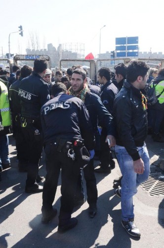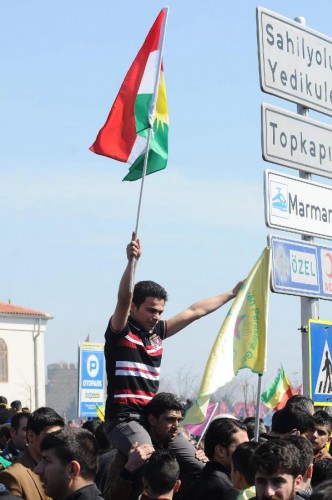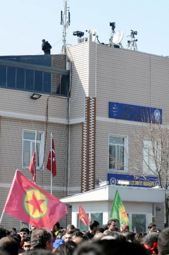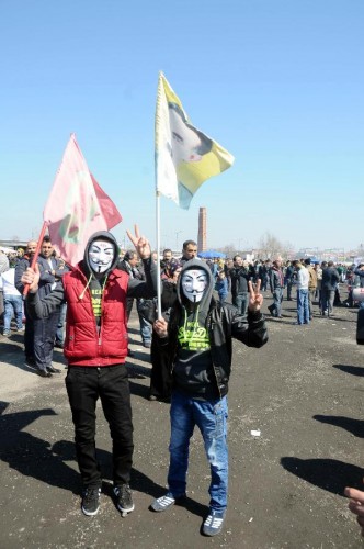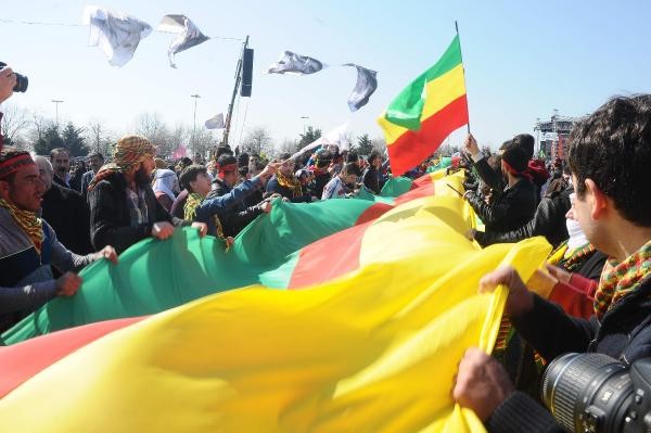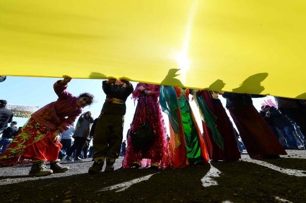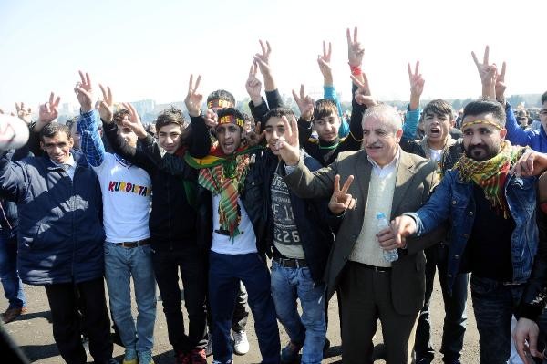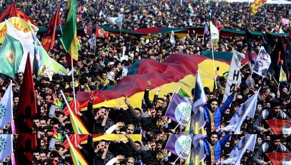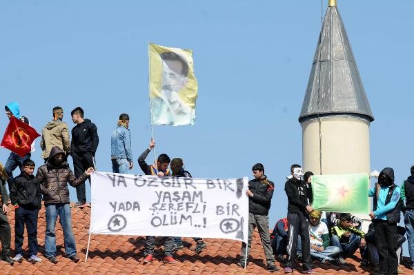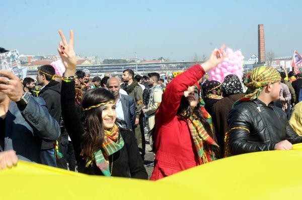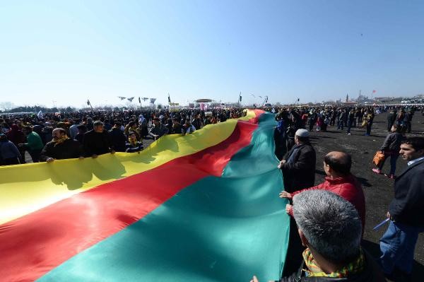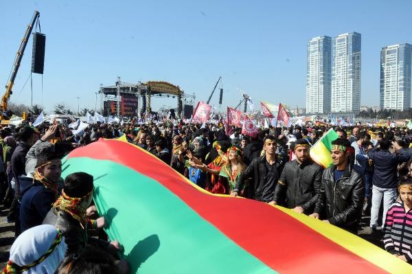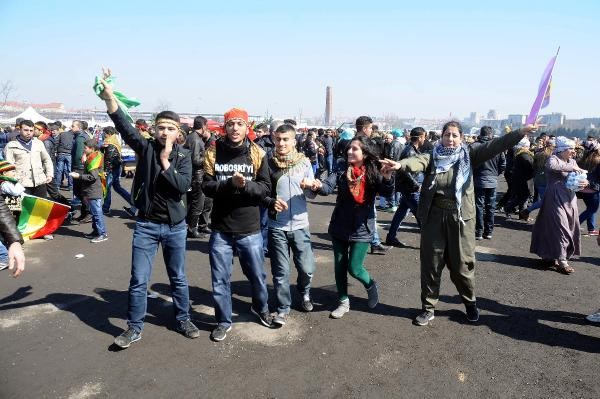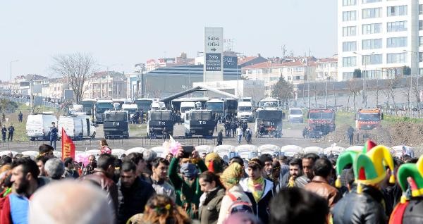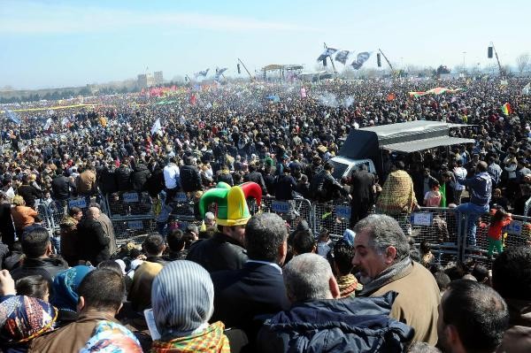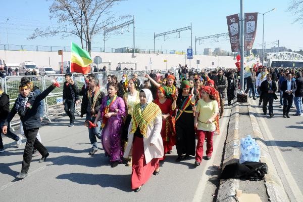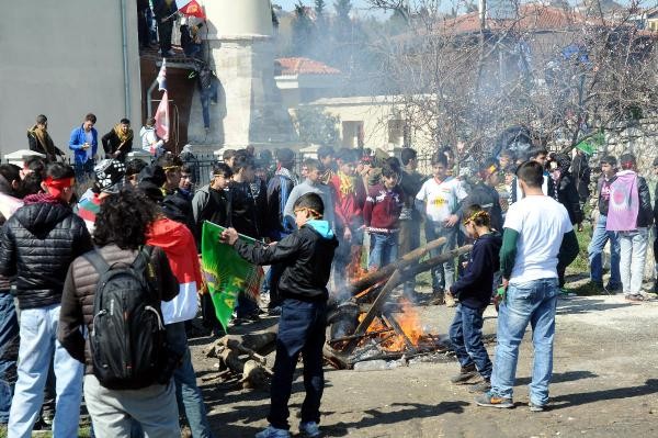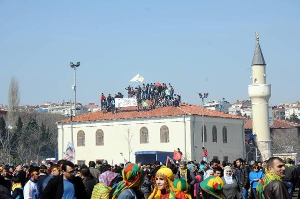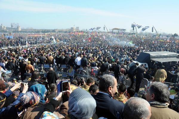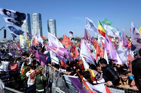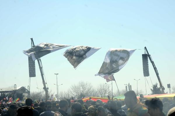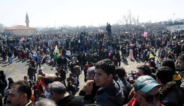 KAZLIÇEŞME'de düzenlenen Nevruz kutlama programına binlerce vatandaş katıldı. Ellerinde PKK ve HDP bayrakları bulunan vatandaşlar, polis noktasında yapılan aramaların ardından miting alanına girdi. Konuşmaların yapıldığı kürsüye, Abdullah Öcalan, Mazlum Doğan ve İbrahim Kaypakkaya'nın posterleri asıldı. Kutlamalara katılan vatandaşlar da halay çekti. Geniş güvenlik önleminin alındığı ve TOMA'ların hazır bekletildiği kutlamaya, HDP Eş Genel Başkanı Selahattin Demirtaş'ın da katılması bekleniyor.