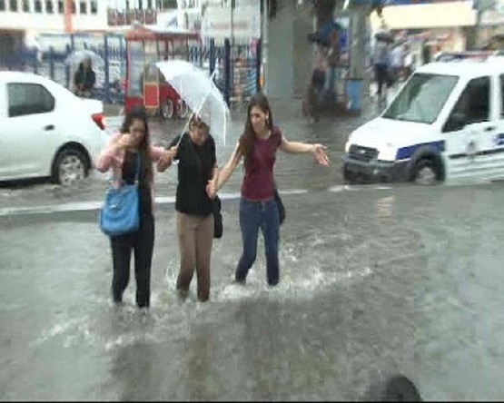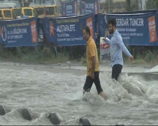 vatandaşlar ve sürücüler zor anlar yaşadılar. Yolun karşısına geçmeye çalışan vatandaşlar su içinde düşme tehlikesi atlattı.