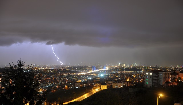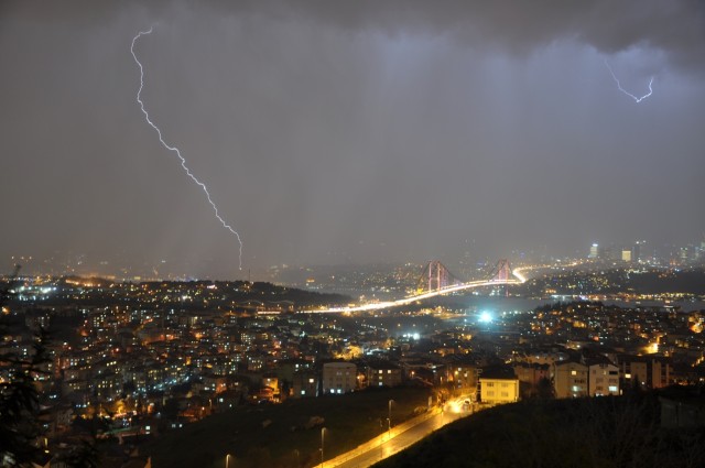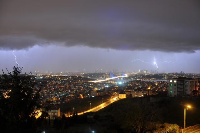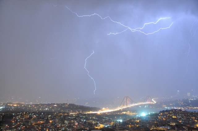 İstanbul'da şimşekli gece... Şimşek Boğaziçi Köprüsüyle böyle bütünleşti