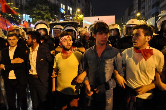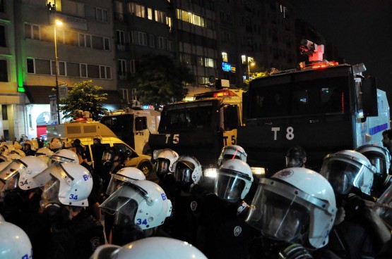Konuşmanın ardından, kalabalık saat 22.30 sıralarında dağılmaya başladı. Bu sırada grup içerisinden bazı kişiler polise şişe attı. Bu esnada polis ile grup arasında kısa süreli gerginlik yaşandı. Gerginlik, kalabalık içerisinden araya giren diğer kişilerin müdahalesiyle son buldu.