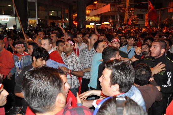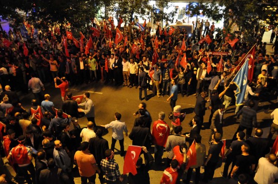 İstanbul'un çeşitli ilçelerinden araçlarla gelen gruplar, dün saat 20.30'dan itibaren Ülkü Ocakları Eğitim ve Kültür Vakfı İstanbul Şubesi önünde toplanmaya başladı. Kalabalık burada Türk bayrakları açarak sloganlar attı. Bu sırada, Büyükdere Caddesi'nden geçen araçlar da korna çalarak eyleme destek verdi. Grup daha, yoldan geçen araçların önünü keserek caddenin Şişli istikametini trafiğe kapattı.