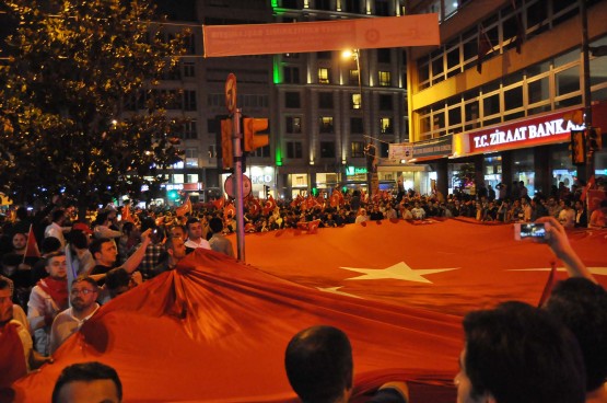 ÜLKÜ Ocakları'nın çağrısı üzerine Mecidiyeköy'de toplanan binlerce kişi "Bayrağa Saygı" yürüyüşü gerçekleştirdi. Grubun önü Şişli Camii önünde kesildi; Taksim'e yürümelerine izin verilmedi