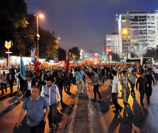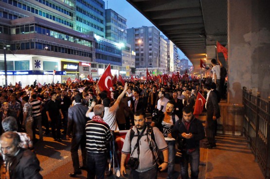 Kalabalık grup, saat 21.00'de Mecidiyeköy'den Taksim'e doğru yürüyüşe geçti. Ancak yürümek isteyen kalabalık Şişli'ye doğru yürümeye başladı. Halaskargazi Caddesi üzerinden Şişli Camii önüne kadar gelen grubun önü burada TOMA ve Çevik Kuvvet ekipleri tarafından kesildi. Polis, toplanan kalabalığın Taksim'e yürüyüşüne izin verilmeyeceğini belirtti. Bunun üzerine, Şişli Camii önünde biriken kalabalık, önce tekbir getirdi, ardından İstiklal Marşı'nı söyledi.