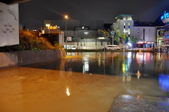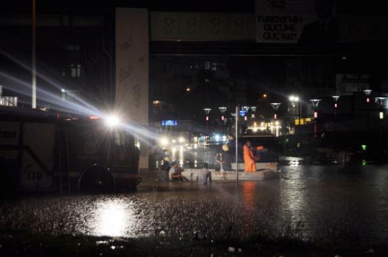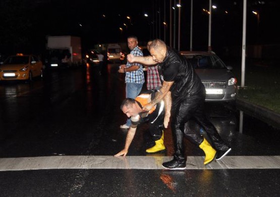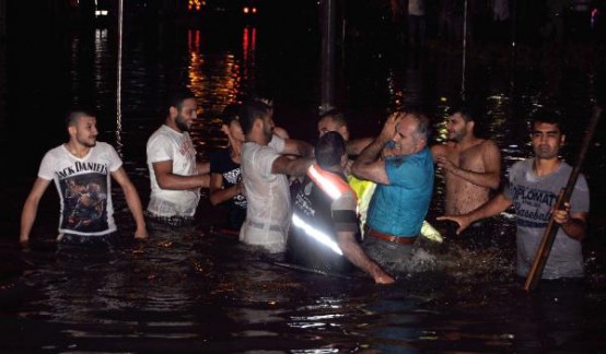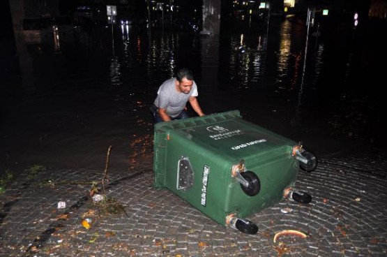 Belediye ekipleri, cadde üzerinde oluşan su birikintilerini tahliye etmek için yoğun çaba sarf etti. Ekipler rögarları açmak için tamamen su birikintilerin içine girince ilginç görüntüler oluştu. Öte yandan, aracının mahsur kaldığını söyleyen ve bu durumdan yetkilileri sorumlu tutan bir vatandaş buradaki belediye ekiplerine saldırdı. Bunun üzerine vatandaşla bir belediye işçisi su birikintisi içinde tekme tokat birbirine girdi.