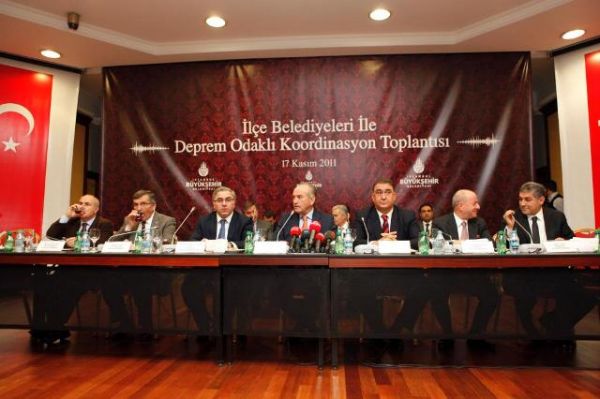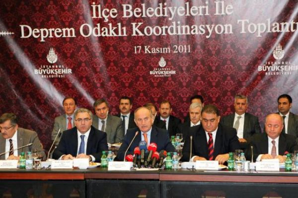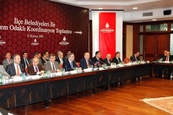 İstanbul Büyükşehir Belediyesi’nde temsil edilen AK Parti ve CHP’nin grup başkan vekilleri, 39 ilçenin belediye başkanları ile teknik başkan yardımcıları İstanbul Büyükşehir Belediye Başkanı Kadir Topbaş’ın davetiyle şehrin geleceğini kurtaracak depreme hazırlık çalışmalarının konuşulacağı toplantıda bir araya geldi.
