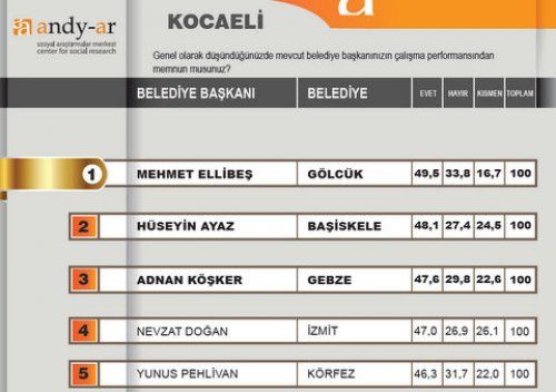 Andy-ar Sosyal Araştırmalar Merkezi tarafından yapılan 'Yerel Yönetim Performansı' araştırmasının sonuçları açıklandı.
