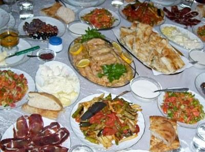 Etli veya etsiz, fazla yağlı olmayan bir sebze yemeği, yoğurt ve meyve, tatlı olarak da sütlü tatlı yenilebilir.