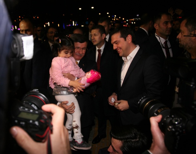 BAŞBAKAN Ahmet Davutoğlu ile Yunanistan Başbakanı Aleksis Çipras, İzmir'de yapılan Türkiye- Yunanistan 4. Yüksek Düzeyli İşbirliği Konseyi toplantısında bir araya geldi. Çipras'ın katılımı ile 95 yıl sonra ilk kez İzmir'e Yunanistan Başbakanı gelmiş oldu. İki başbakan, kadın gazetecilere kırmızı gül vererek, 8 Mart Dünya Kadınlar Günü'nü de kutladı, birbirlerinin fotoğraflarını çekti.