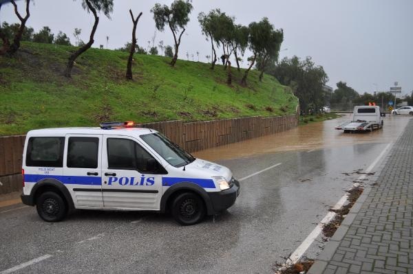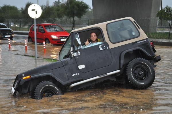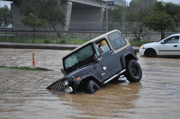 İZMİR'de sabah saatlerinde etkisini lodos ve sağanak yağmur hayatı olumsuz etkiledi. Göle dönen yolda bir bölümü suya gömülen cip ile onu çekmek isteyen kurtarıcı bir süre mahsur kaldı. Bir başka kurtarıcı tarafından her iki araç da sudan çıkartıldı. Ayrıca, körfezdeki vapur seferleri iptal edildi, ağaçlar devrildi, bazı evlerin çatıları uçtu.