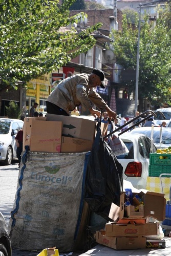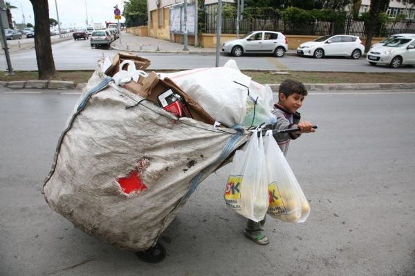 İZMİR'de, aralarında kadın ve çocukların da bulunduğu çok sayıda kişi, birbirleriyle rekabet ederek çöp konteynerlerinden topladıkları atıkları satıp para kazanarak yaşamlarını sürdürüyor.