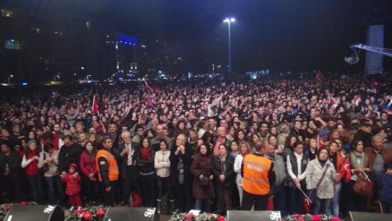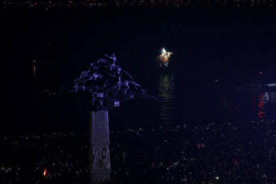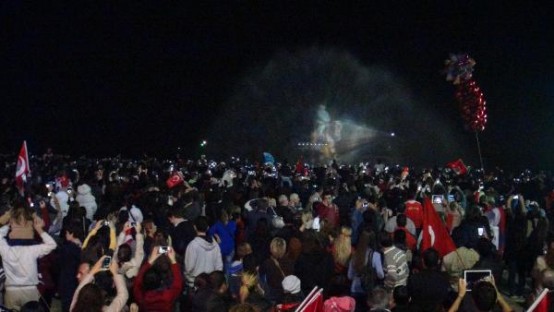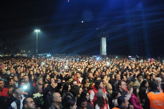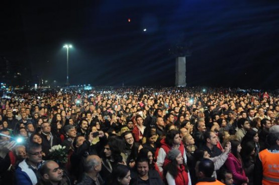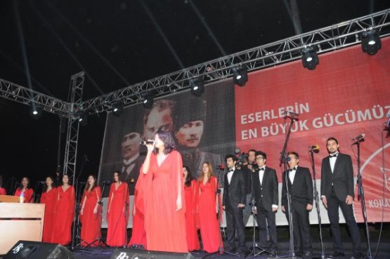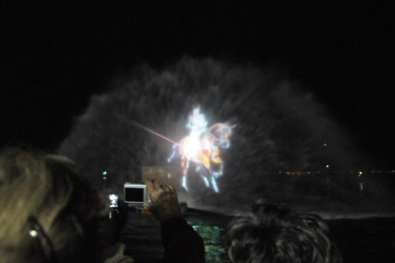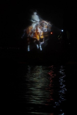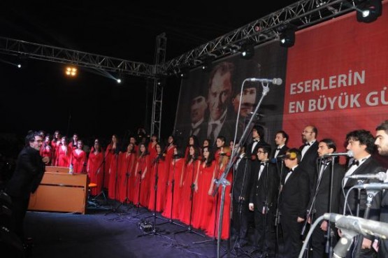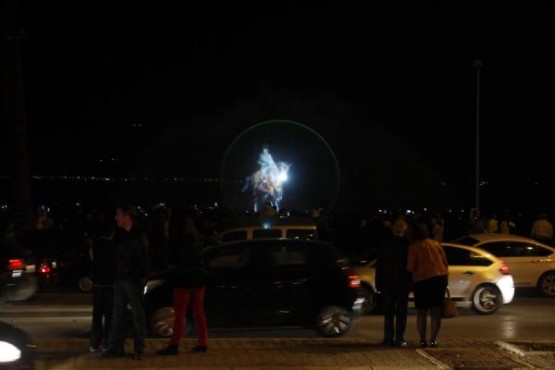 İZMİR Konak Belediye Başkanı Hakan Tartan'ın projesi kapsamında düzenlenen etkinlikte, 22 metrelik tekne üzerine yerleştirilen projeksiyon makinesiyle oluşturan hareketli su perdesinde, at üzerinde Atatürk canlandırması yapıldı. Üçkuyular'dan hareket eden Atatürk görseli deniz üzerinden Gündoğdu Meydanı'na at sürdü, 150 bin İzmirlinin akın ettiği kıyı şeridinde gösteri ilgiyle izledi.