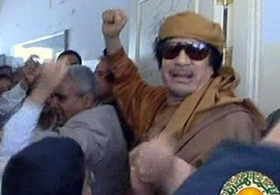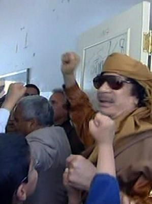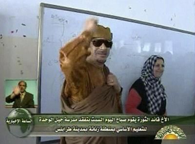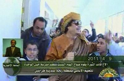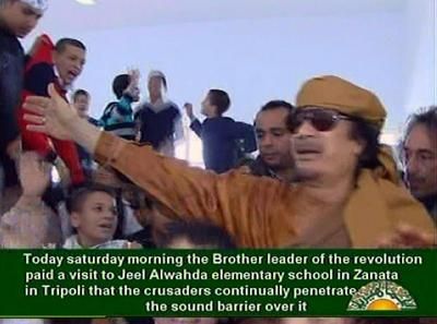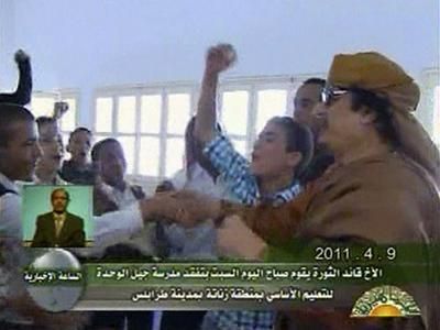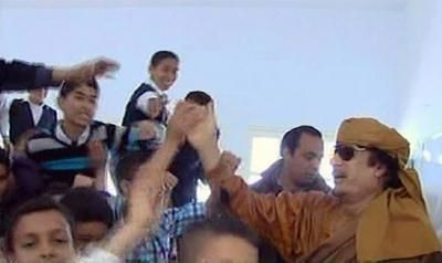 Kaddafi Trablus'ta okul ziyaret etti