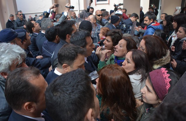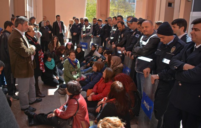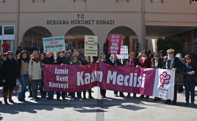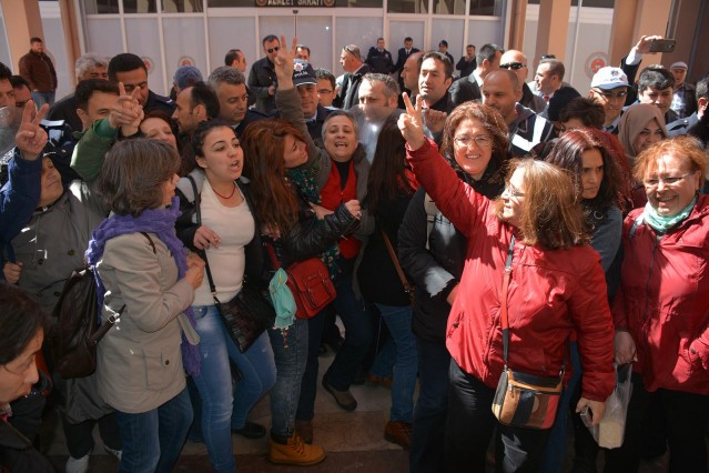 Duruşma için Cumhuriyet Başsavcılığı'nın talebiyle polis, Adliye Sarayının 10 metre önünde güvenlik barikatı oluşturdu. Sanık R.K., diğer sanık avukatları ve müdahil avukatları dışında duruşmaya herhangi bir kimse alınmadı. Duruşmaya katılmak isteyen Eğitim Sen, İzmir Kadın Dayanışma Derneği, çeşitli siyasi partilerin kadın kolları üyeleri, TMMOB İzmir İl Koordinasyon Kurulu Kadın Çalışma Grubu, Dikili Kadın Platformu, Sosyalist Feminist Kolektifi ve İzmir Feminist Kolektif Grubu üyelerinden oluşan grup ile izin vermeyen polis arasında arbede yaşandı. Arbede büyümeden son buldu. Karar sonrası grup, Bergama Adalet Sarayı önünde sevinç gösterilerinde bulunup halay çekti.