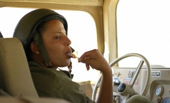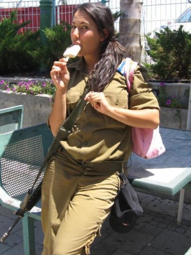İsrail sokaklarında sırtlarında M-4 A1, M-16 gibi uzun namlulu silahlarla pek çok bayan asker görmek mümkün. Sınır bölgeleri hariç birçok bayan asker, görevlerine göre akşamları ya da hafta sonları silahları ile birlikte evlerine gidebiliyor.